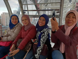 next, kami ke Tempozan Harbour. situ ada mall, ada ferris wheel & Osaka Aquarium Kaiyukan juga kat area situ. first, cari makan dulu sebab dah lunch time. masuk mall, kami tuju ke food court, ku makan tuna Subway je, harga ¥480. adikku makan nasi & tempura sotong & udang, harga ¥1000. lepas makan, kami naik ferris wheel, harga seorang ¥600 kalau tak silap.